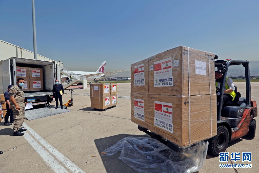 4月6日,中国向黎巴嫩政府和军队援助的新冠疫苗运抵贝鲁特拉菲克·哈里里国际机场。新华社发(比拉尔·贾维希 摄)