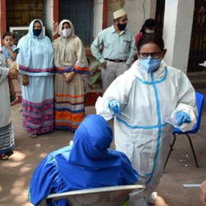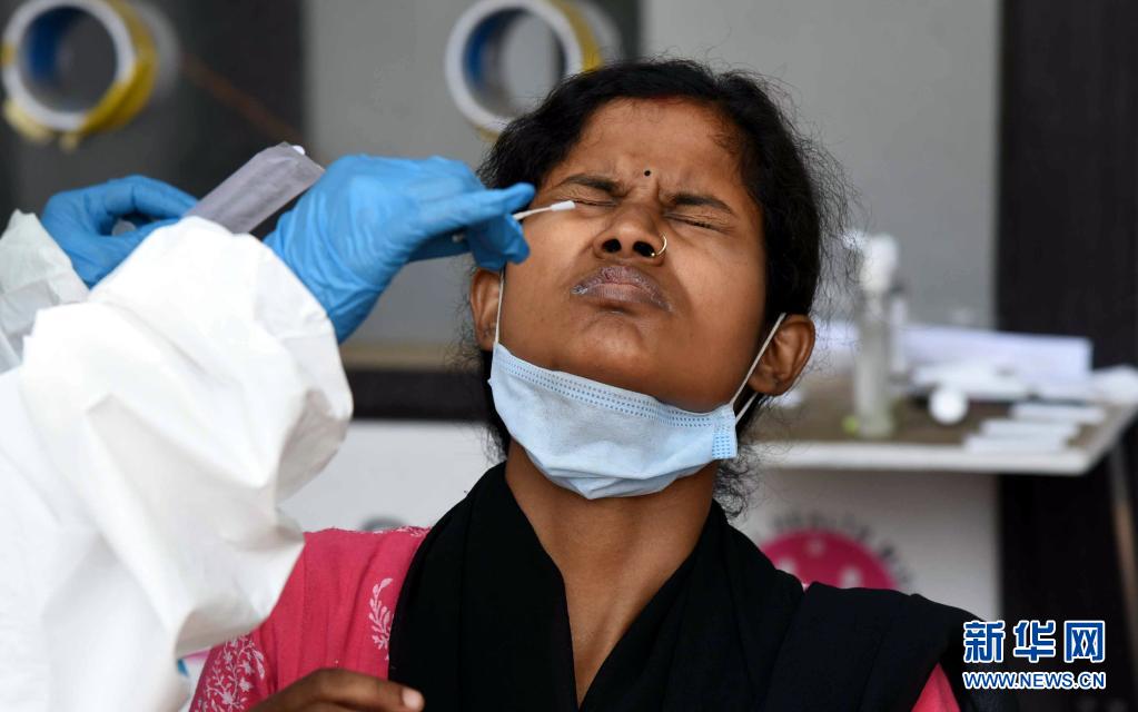 4月6日,一名女子在印度比哈尔邦巴特那接受新冠病毒检测。