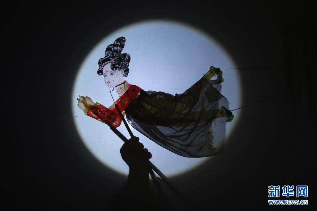 精灵梦皮影艺术团的演员进行皮影戏排练(3月19日摄)。新华社记者 许雅楠 摄