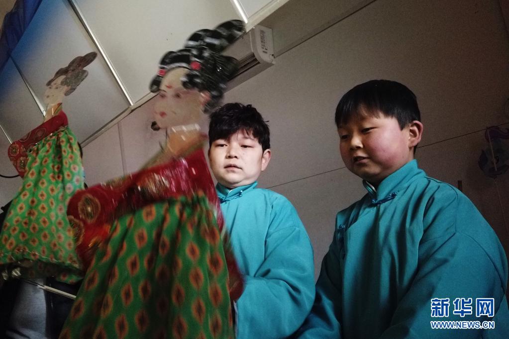 精灵梦皮影艺术团的演员在排练皮影戏(3月19日摄)。新华社记者 许雅楠 摄