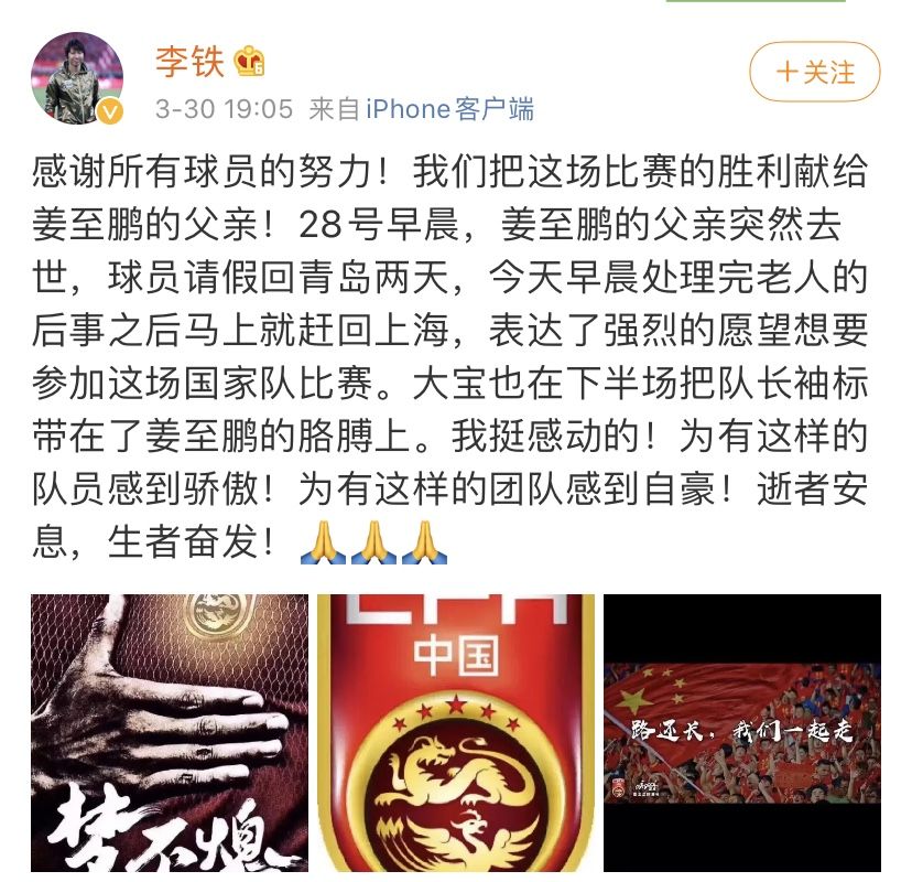 我们把这场比赛的胜利献给姜至鹏的父亲!