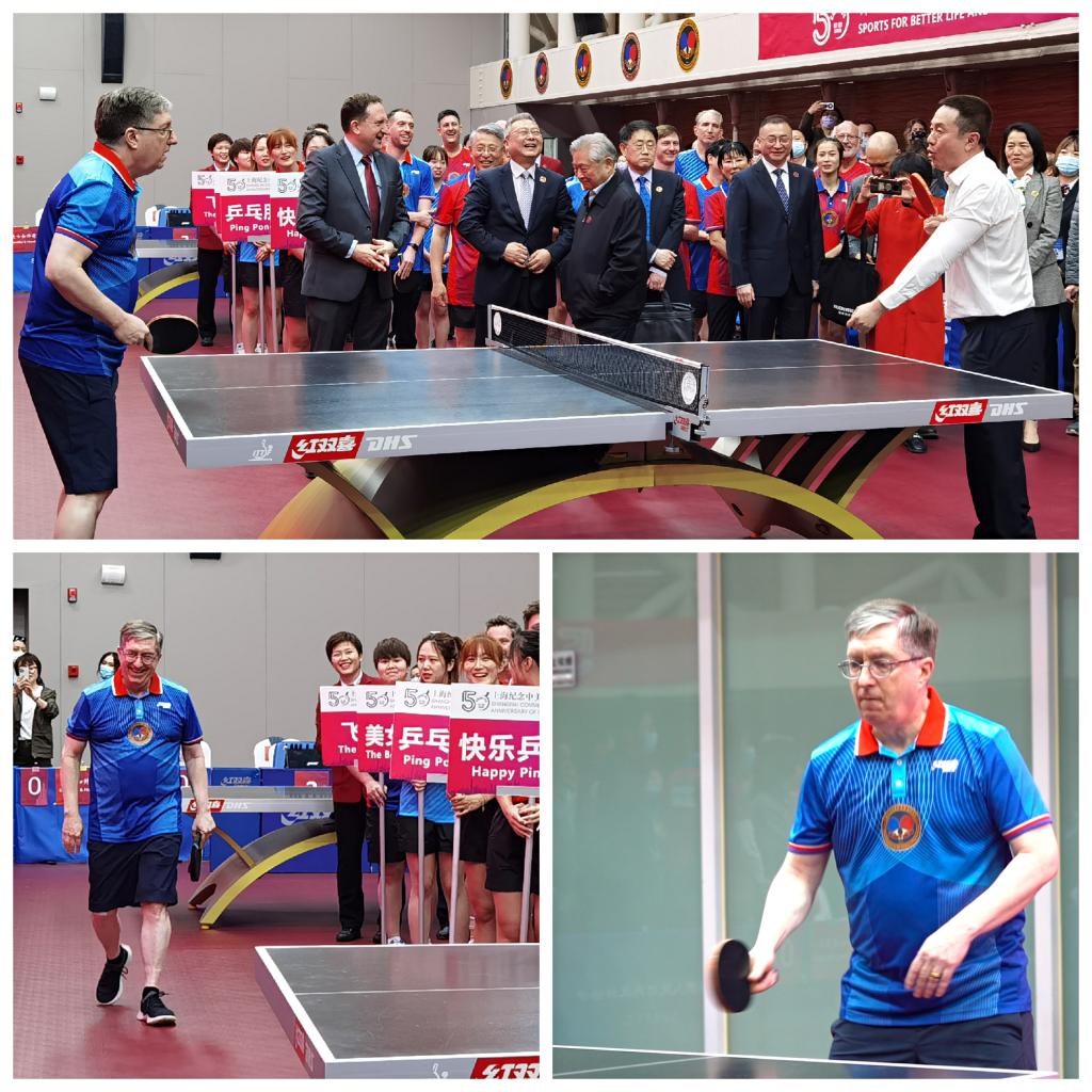 1971年4月10日,美国乒乓球代表团踏上中国土地,成为新中国成立后首批正式到访的美国客人。2021年4月10日,上海中国乒乓球博物馆冠军堂,26名中美乒乓球业余选手结伴组队,正在进行友谊赛。