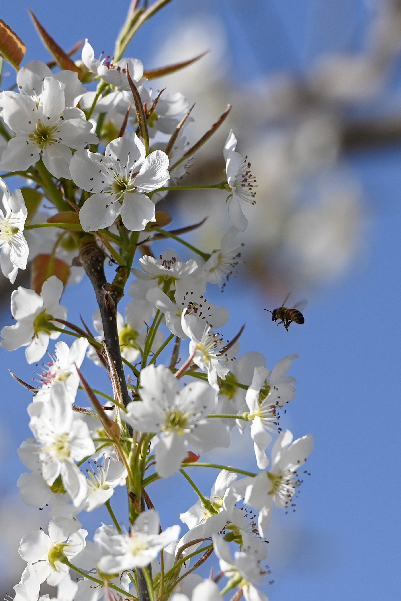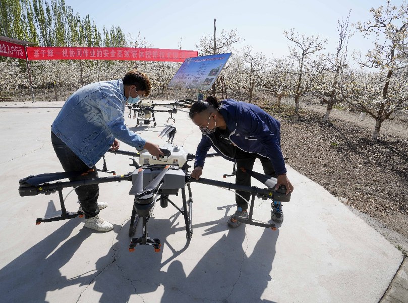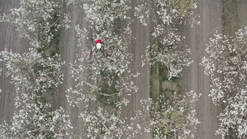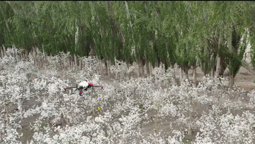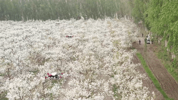 在新疆南疆等地,梨树花期很短,且往往伴随沙尘天气,梨树授粉作为梨产业发展中最为关键的一环,以往通过人工授粉或者蜜蜂授粉进行。随着人工成本不断增加以及产业健康发展需要,以蜜蜂采集的高活性授粉用花粉联合无人机喷施的蜂机协同作业高效液体授粉技术开始出现。