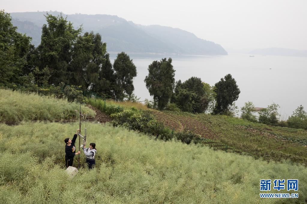 4月10日,在中科院三峡库区水土保持与环境研究站实验样地,科研人员在维护野外监测仪器。