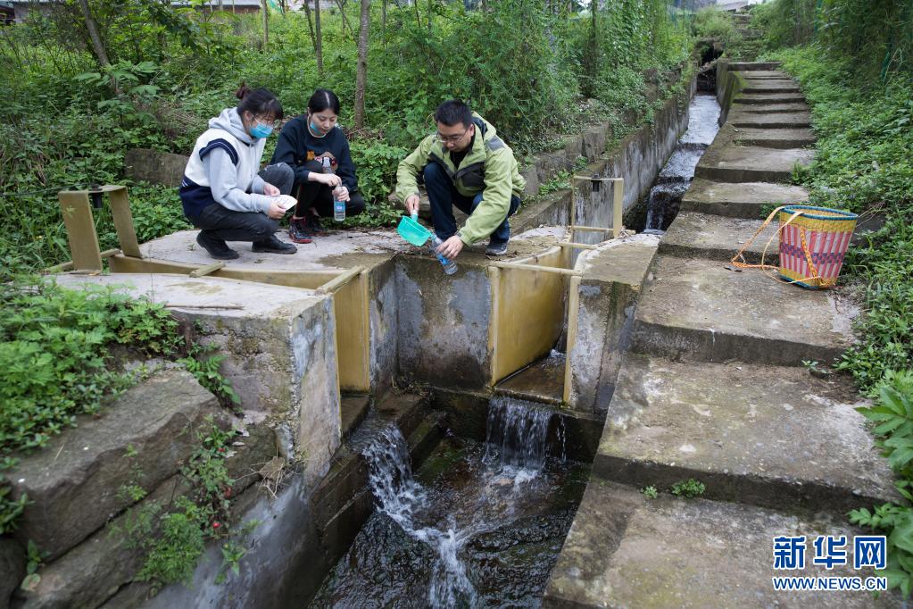 4月11日,在中科院三峡库区水土保持与环境研究站实验样地,成都山地所科研人员在小流域出口收集水样。