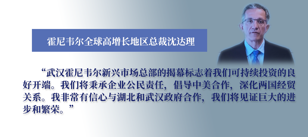 霍尼韦尔全球高增长地区总裁沈达理阐述了投资湖北的原因:湖北地理位置优越,是中国重要的工业基地,是技术创新的策源地,可辐射整个中国,成为从中国沿海市场进军中西部新兴市场的根据地。