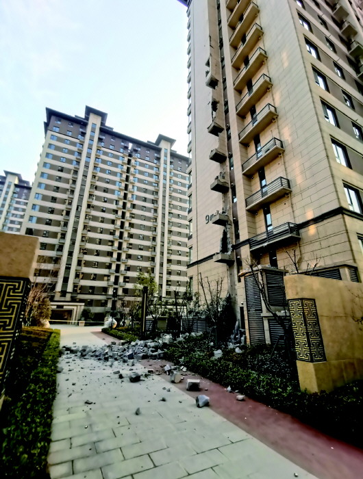 记者在现场看到,坍塌部分涉及一层到九层,大石块散落一地。一些业主表示,这些精装房问题不少,包括阳台梁开裂、入户门有裂缝、地板空鼓、过门石开裂等。