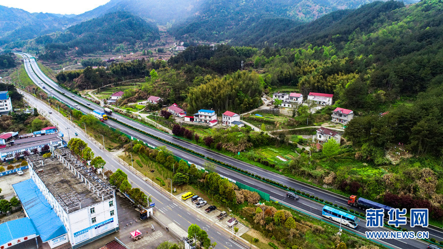 4月11日,在安徽省岳西县天堂镇境内航拍的六潜高速公路。新华网发(王先国 摄)
