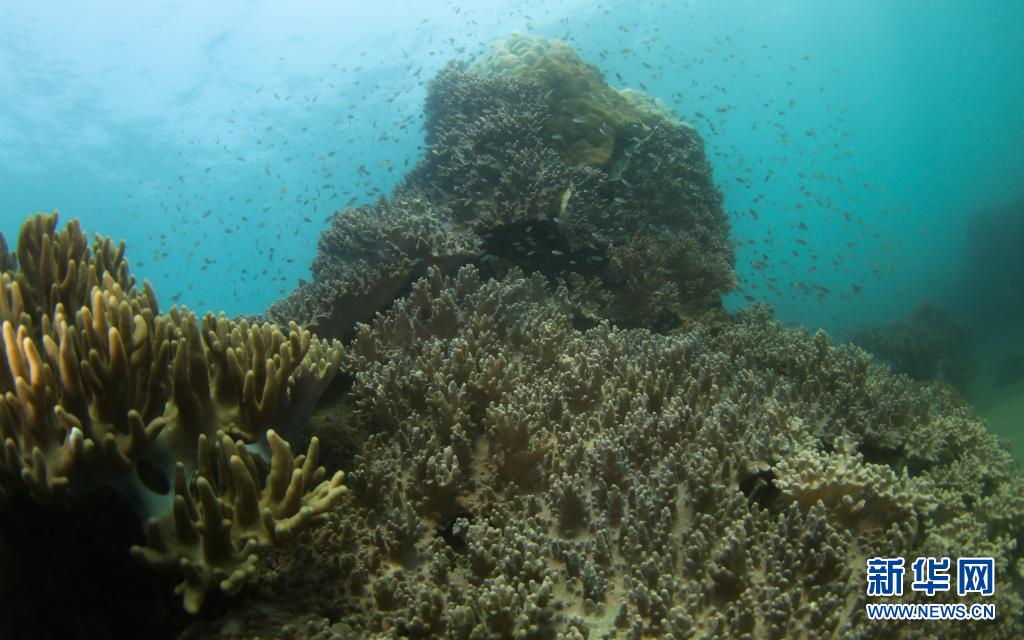 这是在海南三亚崖州湾东锣岛周边海域拍摄的珊瑚和鱼群(3月18日摄)。随着生态修复项目逐渐展开,珊瑚礁生境重建区和珊瑚礁生境恢复区外的珊瑚生长环境也得到改善。