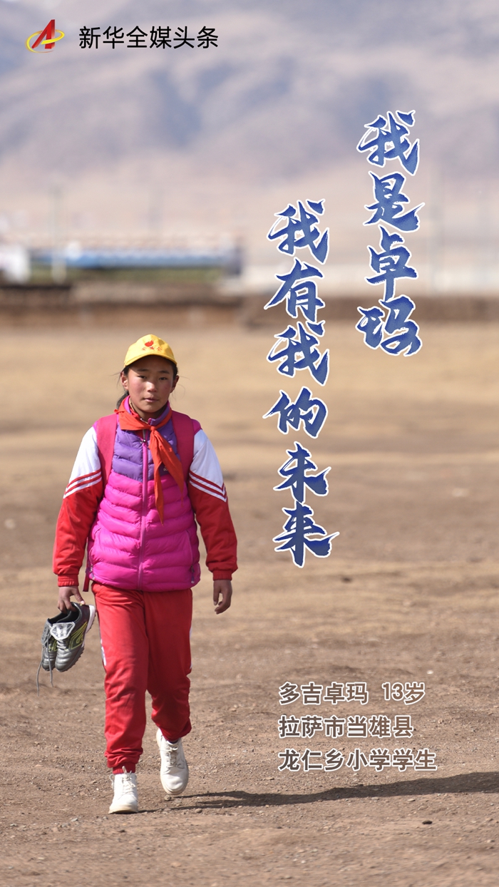 13岁的牧区姑娘多吉卓玛爱踢足球,
