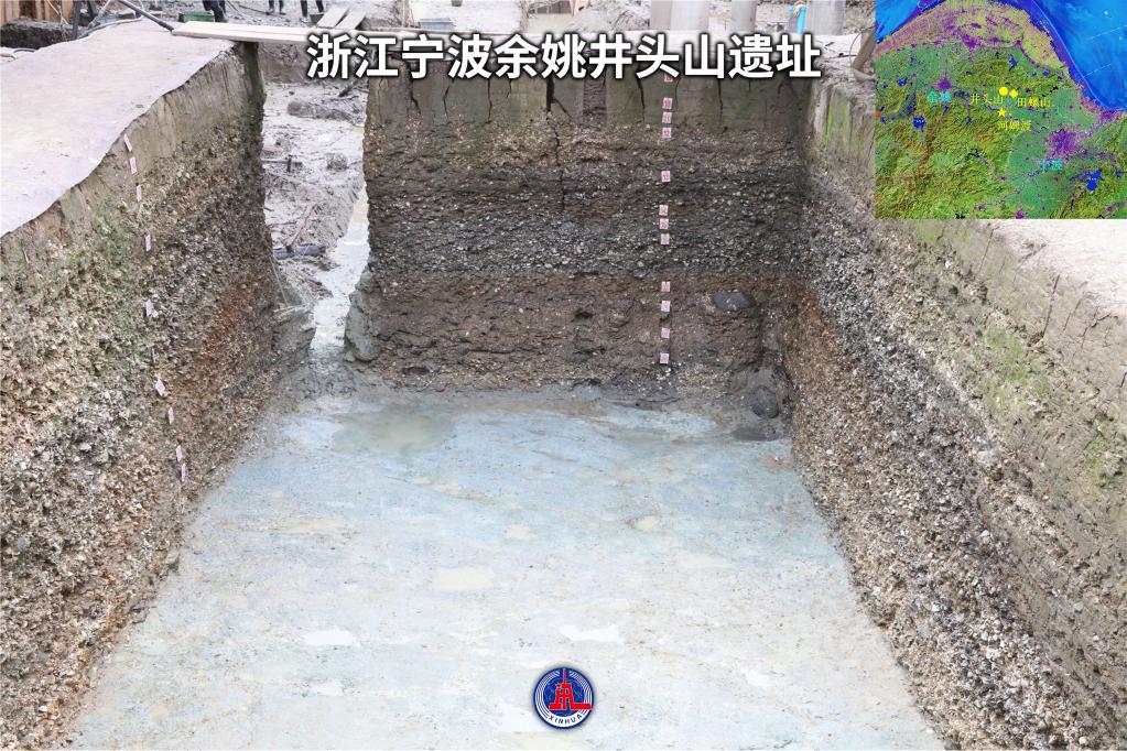 浙江宁波余姚井头山遗址位于浙江省余姚市三七市镇,总面积20000平方米,是中国沿海埋藏最深、年代最早的海岸贝丘遗址。