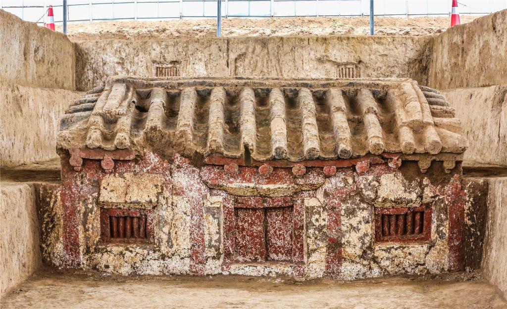 少陵原十六国大墓发掘的第二土雕建筑南面