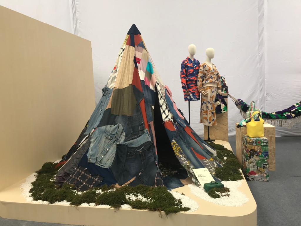上海时装周期间举行的MODE展会上,青年设计师展示可持续时尚的创意,实现“旧衣新生”。记者周蕊摄
