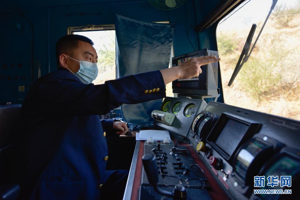 中国铁路成都局集团公司成都客运段5633/5634次列车驾驶员赵玮在发车前确认信号(4月11日摄)。新华社记者 胥冰洁 摄