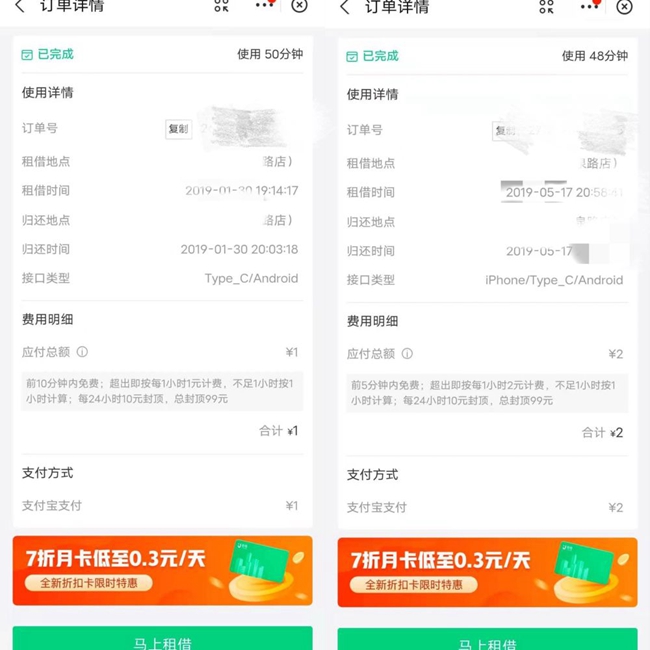 同一品牌的共享充电宝在不同场景收费标准不一样