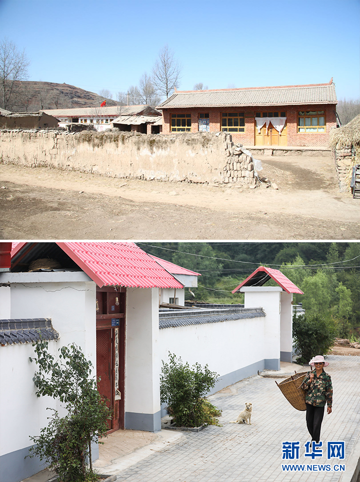 拼版照片:上图为2013年3月4日拍摄的甘肃省定西市渭源县元古堆村民居。新华社发(吴鲁 摄);下图为2020年8月22日在渭源县元古堆村拍摄的民居。新华社记者 马希平 摄
