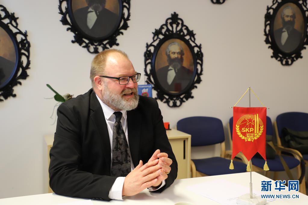 3月24日,芬兰共产党主席尤哈-佩卡·瓦伊萨宁在首都赫尔辛基的芬兰共产党办公室接受新华社记者专访。新华社记者 朱昊晨 摄