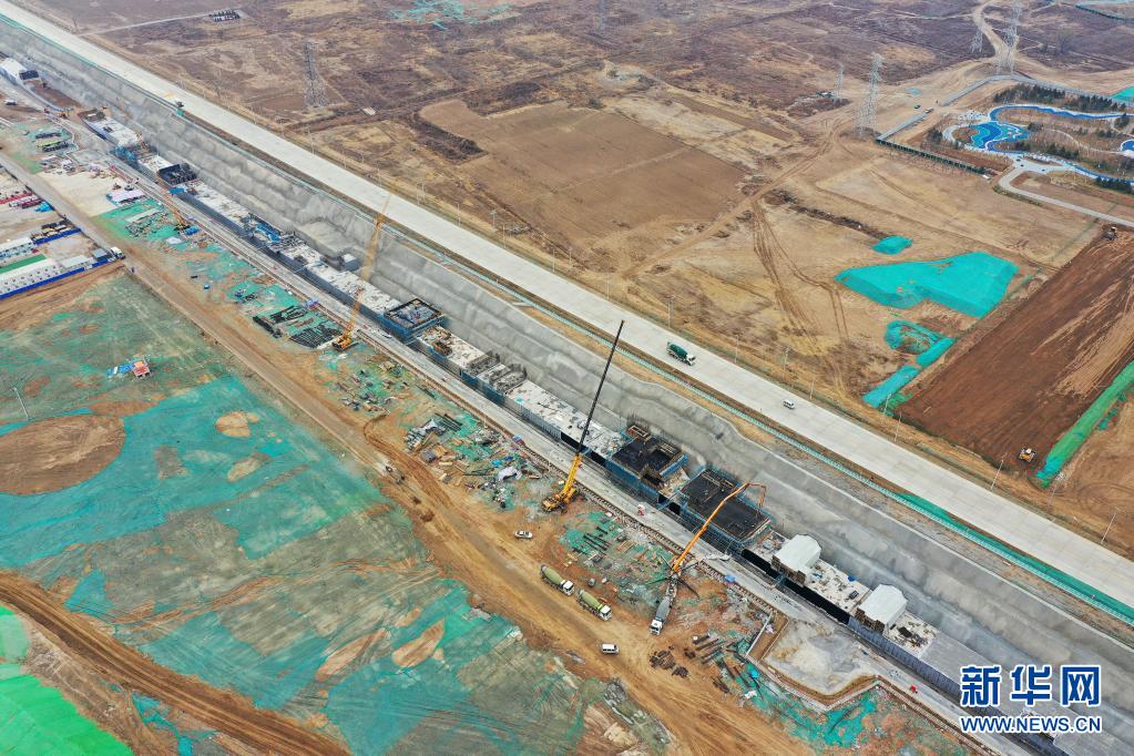 3月18日拍摄的雄安新区启动区地下管廊施工现场(无人机照片)。新华社记者 牟宇 摄