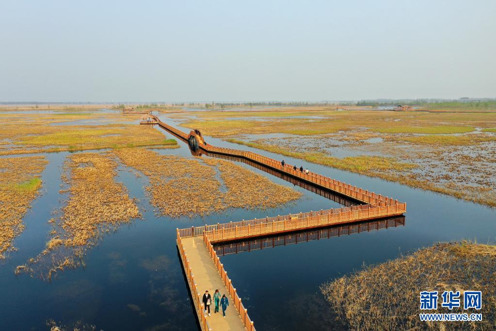 这是4月8日拍摄的雄安新区白洋淀风光(无人机照片)。新华社记者 牟宇 摄