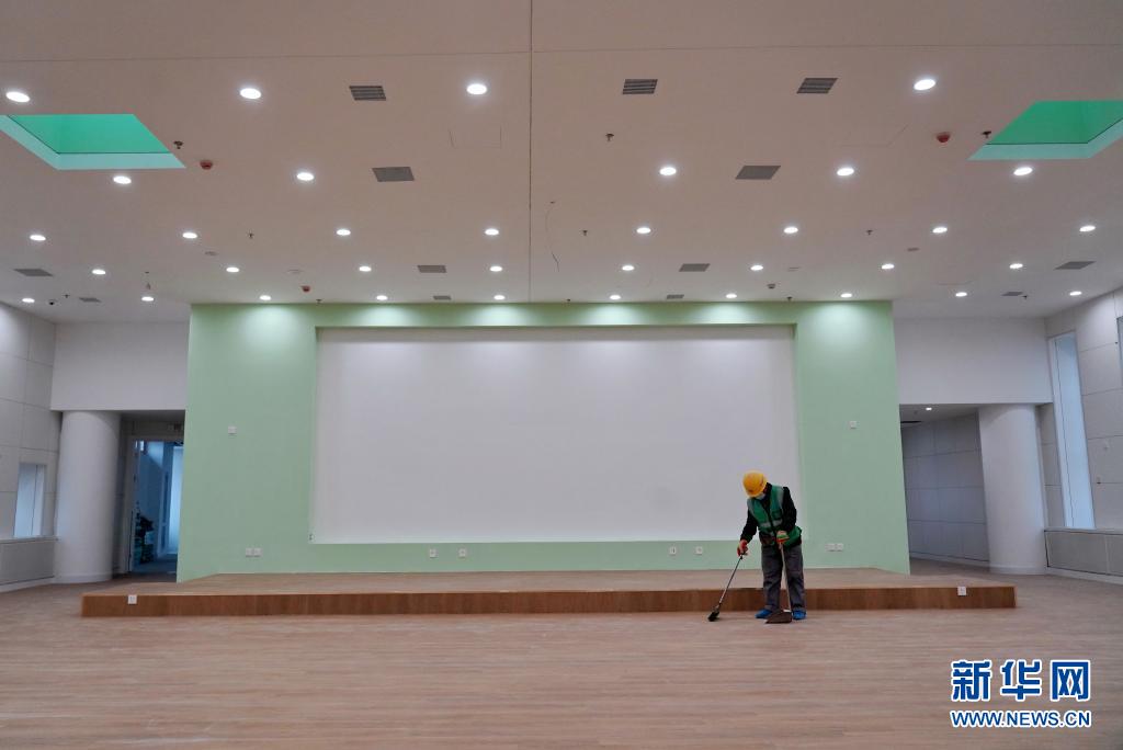 工人在北海幼儿园雄安园区内打扫地面(3月18日摄)。新华社记者 牟宇 摄