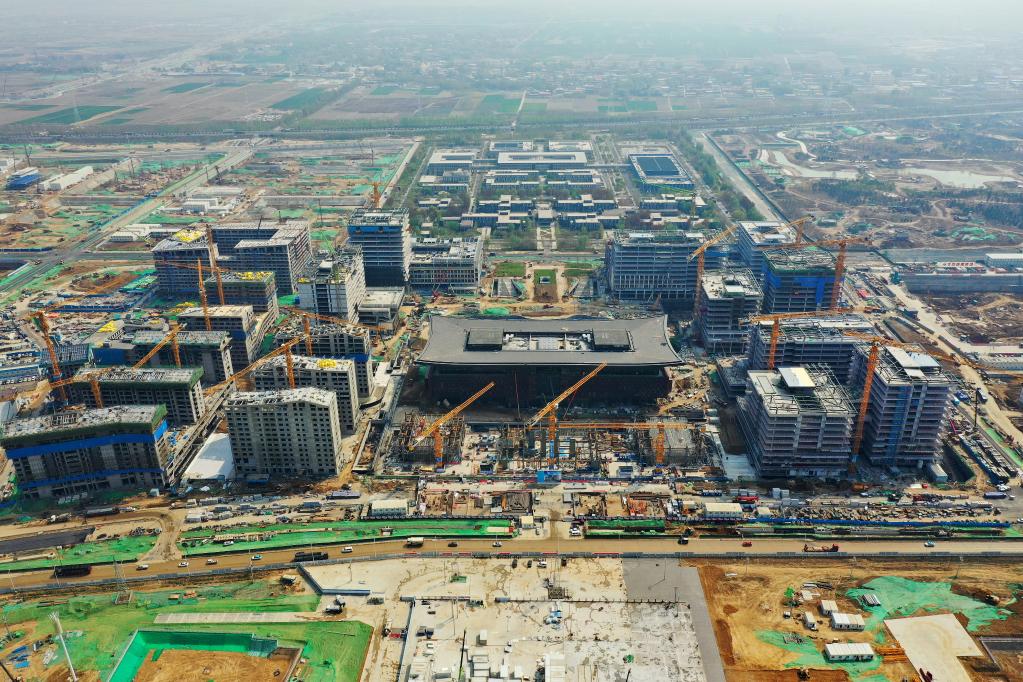 雄安新区商务服务中心建设现场。(无人机照片,新华社记者牟宇4月8日摄)