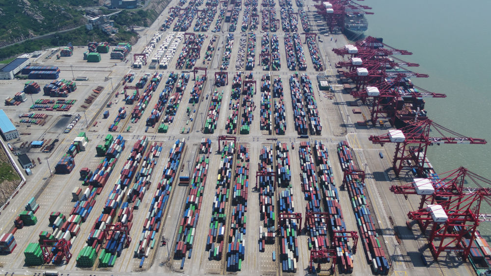 上海洋山港集装箱码头(无人机照片)。新华社记者 丁汀 摄