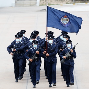 同日,香港纪律部队在各自院校举行开放日,表演中式步操,以彰显国家情怀,加强国安意识。