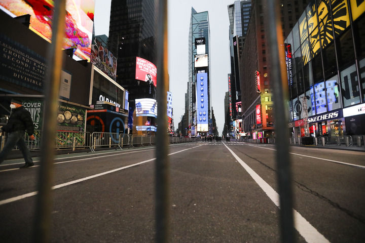 这是2020年12月31日拍摄的空荡的美国纽约时报广场。 新华社记者 王迎 摄