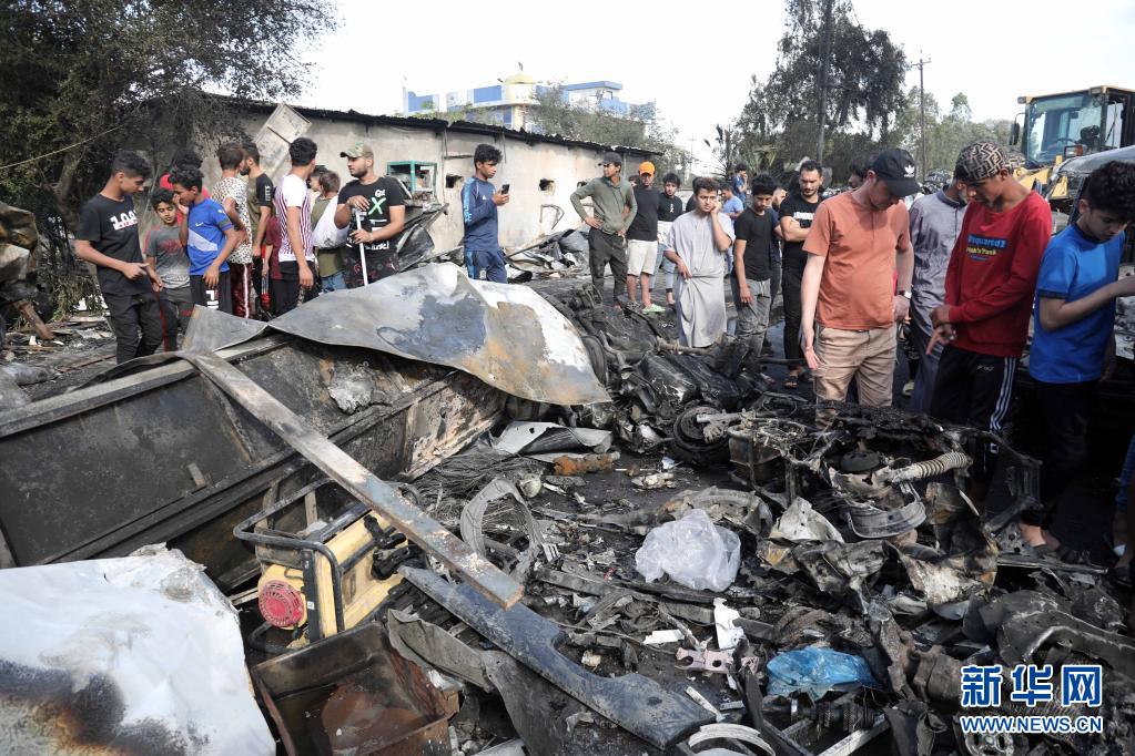 4月15日,人们聚集在伊拉克巴格达东部萨德尔城的汽车炸弹袭击现场。新华社发(哈利勒·达伍德 摄)
