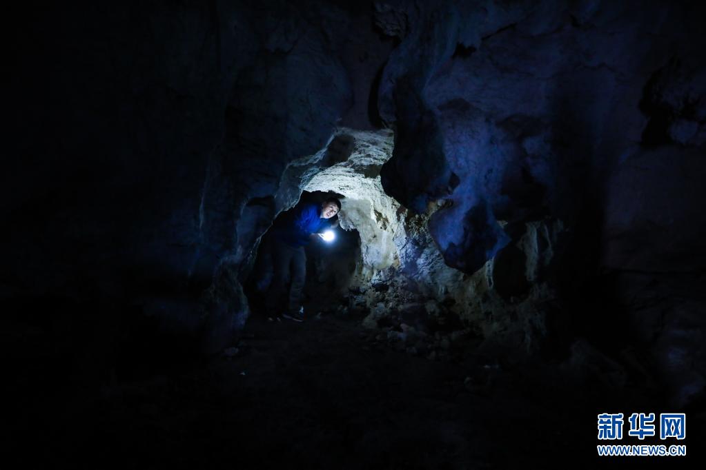 4月16日,工作人员在贵州贵安新区招果洞遗址内考察。