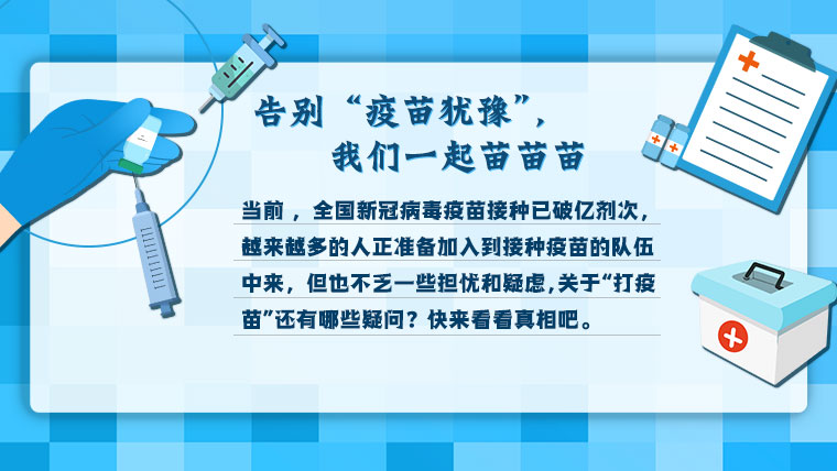 当前,全国新冠病毒疫苗接种已破亿剂次,越来越多的人正准备加入到接种疫苗的队伍中来,但也不乏一些担忧和疑虑,关于“打疫苗”还有哪些疑问?快来看看真相吧。