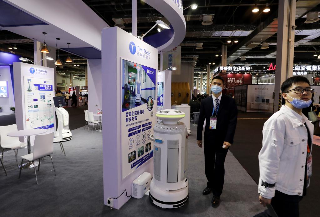 图为第八届中国(上海)国际技术进出口交易会现场的消毒机器人。 新华社记者方喆 摄