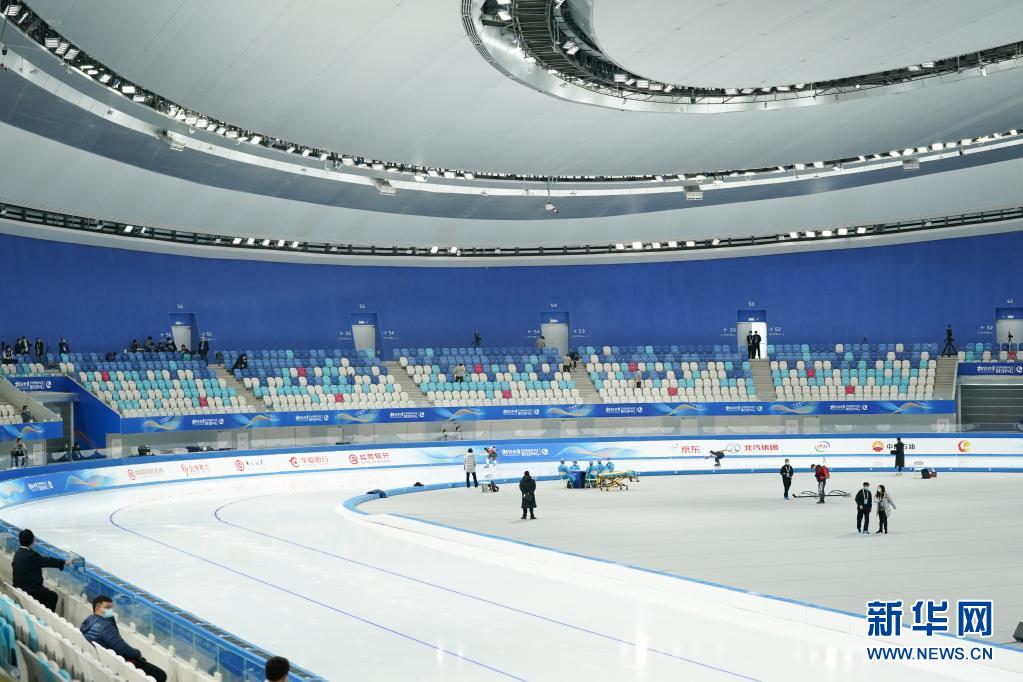 2021年4月7日,“相约北京”冰上测试活动速度滑冰比赛在国家速滑馆“冰丝带”举行。(新华社记者鞠焕宗摄)