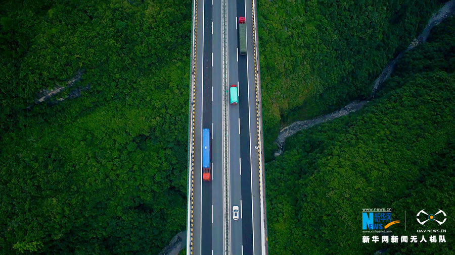 航拍视角下的G65包茂高速武陵山大桥。新华网发(向进 摄)