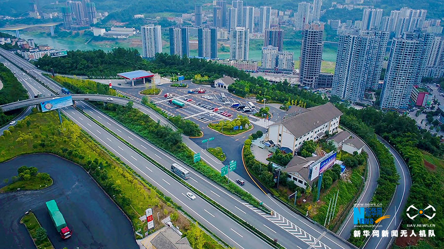 G65包茂高速沿线的滨江小城。新华网发(向进 摄)