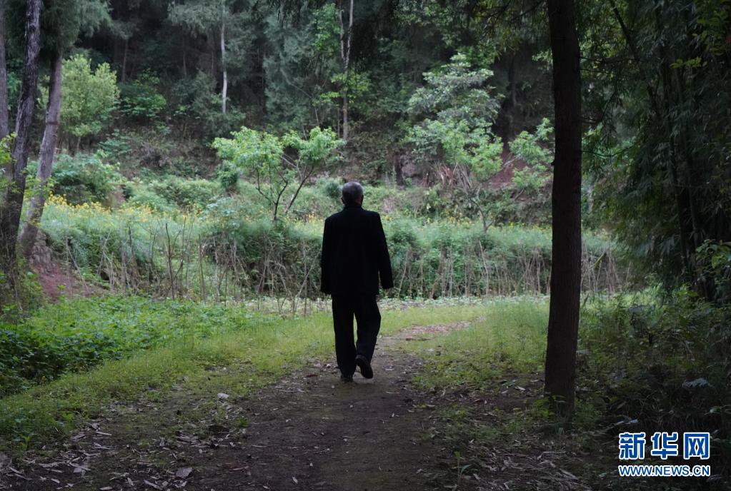在四川省南充市仪陇县永光镇炬光村,黄国平的伯父黄国俊走在回家的山间小路上(4月19日摄)。新华社记者 刘梦琪 摄