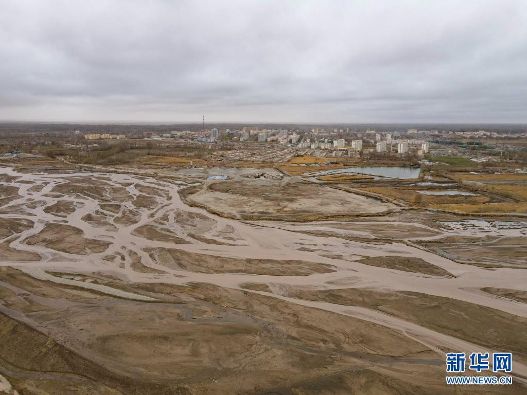 车尔臣河隔开了塔克拉玛干沙漠与新疆且末县城(3月31日摄 ,无人机照片)。新华社记者 高晗 摄