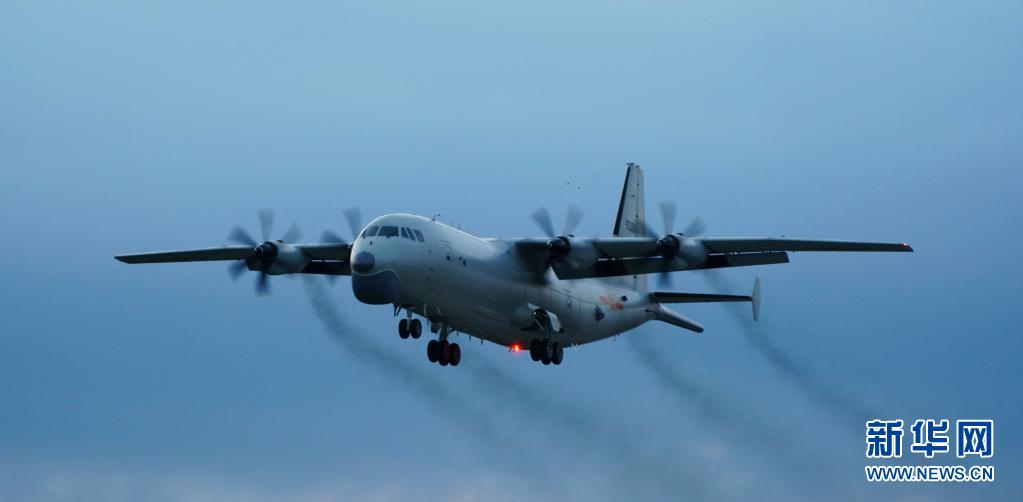 海军航空兵战机在暮色中进行平飞(资料照片)。新华社发(张英锴 摄)