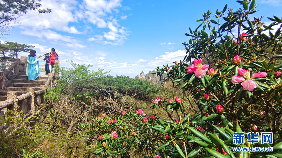 黄山杜鹃花盛开。新华网发(陶盼 摄)