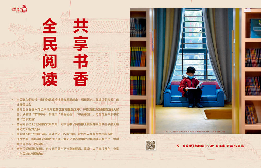 如今,推广全民阅读,建设“书香中国”,犹如点亮一座灯塔、撒播一捧种子、开凿一眼清泉。从持续加强顶层设计保障“有书读”,到日益夯实硬件基础、增加优质阅读内容供给支撑“读好书”,再到展开丰富多彩的阅读活动引导“爱读书”,氤氲书香飘满中国。