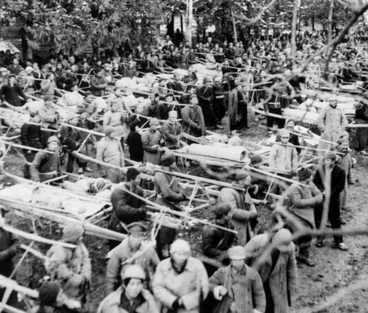 参加渡江作战的民工担架队整装待发(资料照片)。新华社发(渡江战役纪念馆供图)