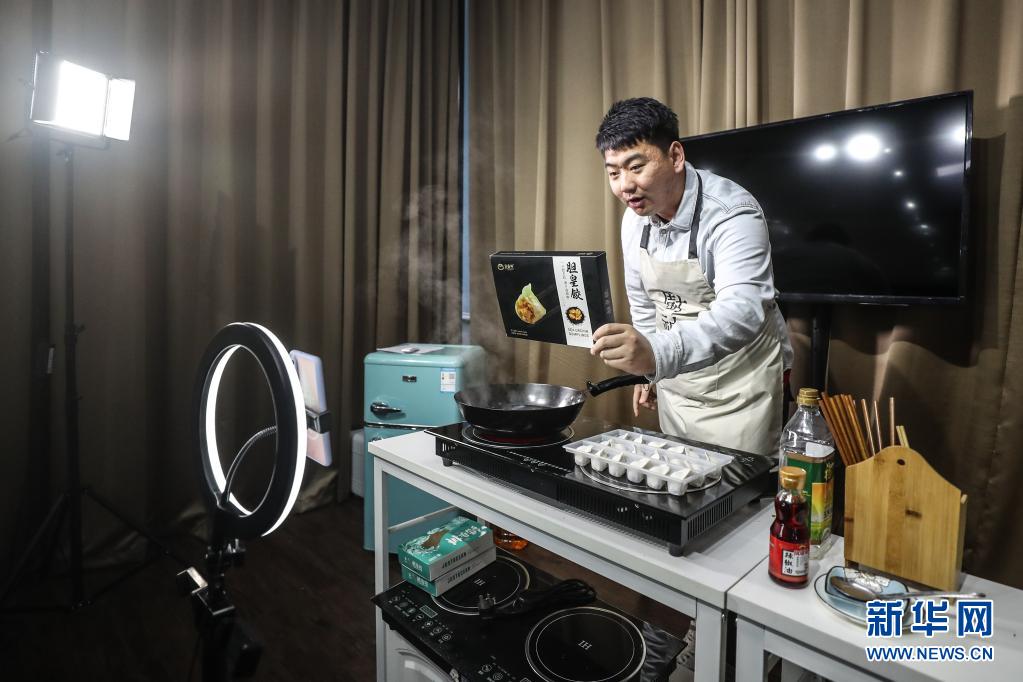 辽宁省营口市老边区社交电商产业园一家公司的网络主播在直播卖货(2020年6月2日摄)。新华社记者 潘昱龙 摄