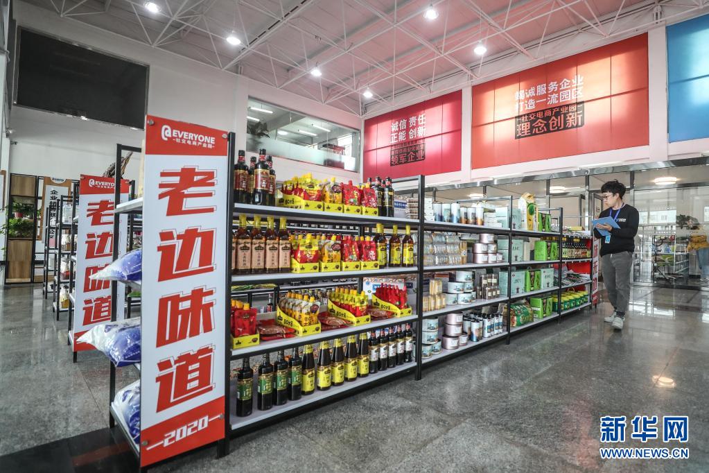 同样,另一家企业“娘娘家”的电商直播也是一片繁忙:四五名主播在各自手机屏幕前热情地介绍着身后货架上的商品,隔壁十余名工人按订单熟练地对商品进行打包、分类。主播房雪告诉记者,如今基地天天有多位主播直播带货,每天快递要发3万余单,日销售额近80万元。