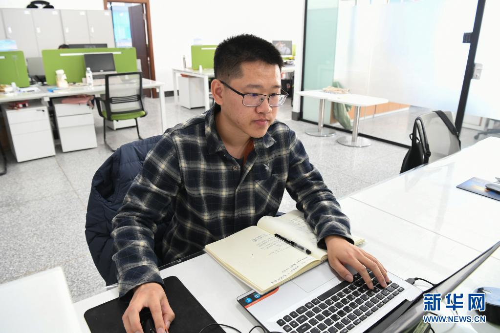 郭子涵在村委会录入村民信息(2020年4月摄)。新华社发