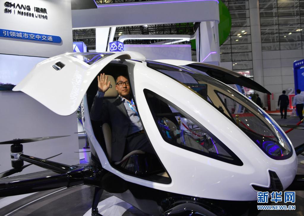 4月25日,在第四届数字中国建设峰会数字成果展览会上,一家公司在展示采用无人驾驶技术的载人自动驾驶飞行器。新华社记者 魏培全 摄