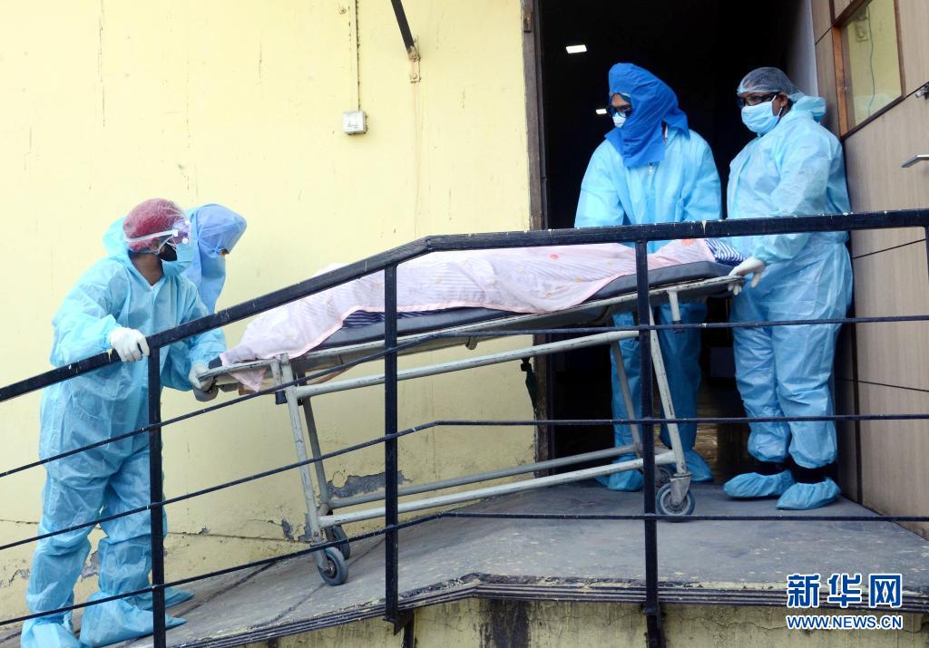 4月24日,印度阿姆利则的医务人员转移因感染新冠去世病患的遗体。新华社发