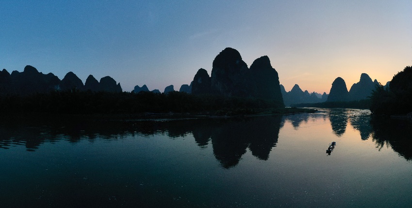 广西桂林市阳朔县兴坪镇山水风光(2020年5月19日摄,无人机全景照片)。