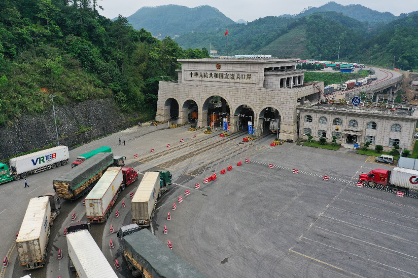 友谊关口岸(2019年4月17日摄,无人机照片)。
