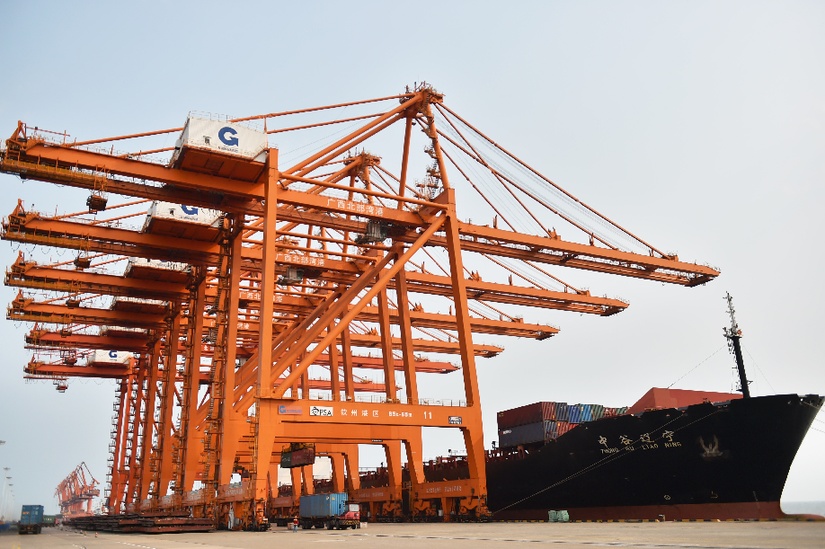 广西钦州保税港区集装箱码头(2019年4月11日摄,无人机照片)。