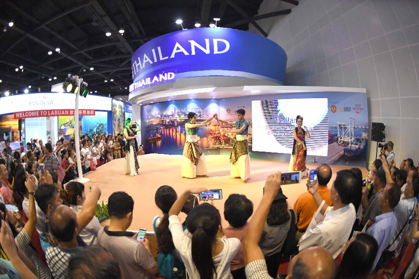 人们在中国-东盟博览会“魅力之城”展区观看泰国民族风情表演(2017年9月15日摄)。